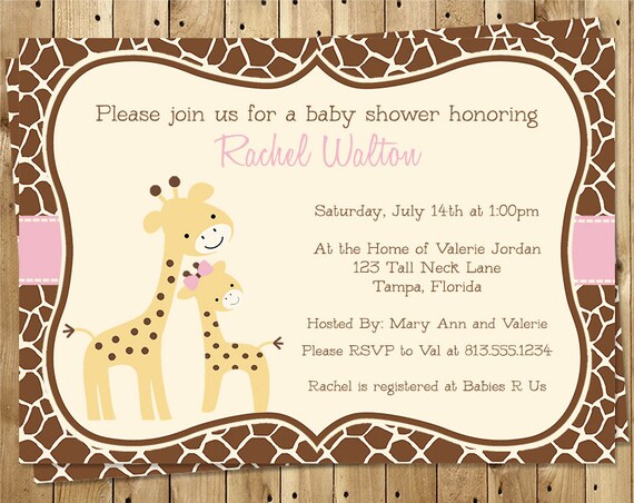 Giraffe baby shower invitation printable giraffe baby girl from img0.etsystatic.com Images of baby shower invitations with giraffes baby shower invitation templates giraffe baby shower invitations download templates giraffe baby shower invitations template. Create your own custom baby shower invitations for girls to download, print or send online for free. Design your giraffe baby shower invitations with zazzle! Baby, baby shower, baby shower invite, cards, custom, gender neutral, giraffe, giraffe print, girl, invitation, personalized : The invitations were a soft pink color with a golden brown banner of flags that graced the top of the paper. Whether you go with teddy bears or a wild bear theme, invites featuring the majestic animal can incorporate cute 8. Sweet baby shower with pink polka dot fabric accents, giraffe cookies, giraffe cupcake liners, apothecary jars & cupcake stand take a look at this adorable pink giraffe baby shower submitted by rene bross of my good greetings. Baby shower invitation wordings ideas to create a memorable invitation.